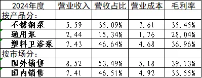 公司的业务其实非常简单,就是围绕「泵」这个产品的设计研发、采购生产、销售及售后,典型的制造型企业,甚至生产技术也都已经非常成熟了,没有太多花里胡哨的玩意儿,属于成熟型企业,直接看2024年年报的三大报表。上图是没有做过简化的2024年度资产负债表,为了不被数字绕晕,就把单位都换算成了亿元,报表科目都保留了。这张是简化过后的报表,把一些数值很小,对报表没有太大影响的科目删除了,可以看得更加直观。公司的整个资产负债情况很清爽,甚至可以说是非常清爽。一共25亿的资产,包括13亿的现金及类现金,1.6亿的应收,2.7亿的存货,3亿的固定资产,4亿的其他非流动资产。没了。负债就更清爽了,总共就一个多亿的负债,没有任何有息负债,只有一点应付账款和合同负债。1.货币资金。一共4.23亿,其中2.9亿是定期存款,0.1亿是应计利息,另外都是银行存款,哦还有8156元的库存现金。2.交易性金融资产。一共8.64亿元,买的银行的理财产品。3.应收账款。一共1.73亿元的应收款,扣掉计提的坏账准备后还有1.63亿。其中一年以内的应收款占98.8%,剩下的都是1-2年的应收款,超过两年的应收款都没有。4.其他应收款。虽然金额不大,但是个藏污纳垢的重灾区,还是得看一看。总金额0.06亿,提了0.04亿的坏账。主要是往来款,占比88%。2-3年、3年以上的应收款都放到这里了,难怪应收账款明细这么干净。按照这个坏账比例,这一块的金额估值的时候保守起见应该全部剔除。5.存货。账面余额2.78亿,提了0.04亿的减值准备。主要是原材料、在产品、库存商品和委托加工物资。6.固定资产。一共3.15亿,其中房屋及建筑物2.08亿,机器设备1.02亿,运输设备和电子设备共0.05亿。另外,去年的在建工程车间项目2024年建好转固了。7.其他非流动资产。一共4.135亿,有4.1亿是一年以上到期定期存款及利息,说白了,还是现金。8.应付账款。其中应付货款0.73亿,应付设备及工程款0.02亿。总结一下,4.23+8.64+4.1=16.97亿的现金及类现金,2.78亿的存款,3.15亿的固定资产,1.7亿的应收款,没有任何有息负债,1.1亿的应付现金或应交商品。构成了这家公司的所有生产工具。公司整体毛利率为36.53%。分产品看,塑料卫浴泵的毛利率最高,将近37%,通用泵的毛利率最低,28%。分市场看,国外市场毛利率高于国内市场,说明国内确实卷哈哈。顺便看一下产销量的情况。公司介绍中产能是350万台,说明还没有饱和。公司“以销定产”的政策也能让产能实现合理利用。没有任何的利息支出,主要是利息收入和汇兑净损益。关于利息收入,其实2024年底比2023年底的现金更多了,但是收入更少了,很明显,收益率降低了,当然,这也符合全国降息的大环境。至于汇兑净损益,无非是公司外销收到的都是美元,产生汇率浮动,这个不受人为控制了。经营活动现金流量净额4.43亿,净利润4.42亿,完全符合公司先款后货或者先一手交钱一手交货的销售理念。净利润的质量非常高。投资活动,收回银行理财和定期存款7.43亿,购买银行理财和定期存款19.59亿,差额12.32亿,基本就是交易性金融资产和其他非流动资产之和。筹资活动,只有留出,就是分红,每股分1元,一共赚了4.43亿,分红分了3.58亿,分红率达80.8%。这分红率,实打实的诚心了,当然,也从侧面反映出公司赚的都是实打实的真钱。不像有的公司一毛不拔,或者借钱分红,这点王董还是靠谱。最后,再做个总结,至少目前从2024年度的财报中,没有看出这家公司有什么特别大的问题,看到的似乎都是好消息,简单清爽的成熟型企业,分红也诚心,报表也干净。下一步,继续阅读2025年的报表。人生就像滚雪球,重要的是发现很湿的雪和很长的坡。