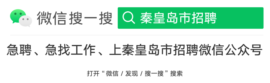 关注↑秦皇岛市招聘,汇集秦皇岛市招聘网,涵盖秦皇岛人才网,秦皇岛招聘会,秦皇岛招聘网、秦皇岛优秀企业、事业单位、店铺、团体等优质工作岗位及招聘信息,秦皇岛求职找工作和秦皇岛兼职资讯平台…