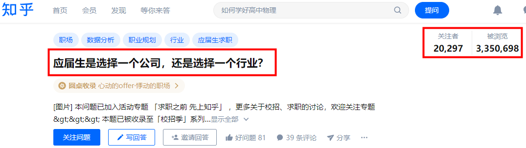 前阵子,看到知乎上一个335万热度的话题,问:“应届生是选一个公司,还是选择一个行业?”