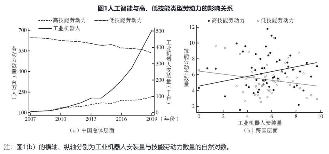 第一,人工智能在提升高技能劳动力需求的同时,对低技能劳动力形成替代压力。