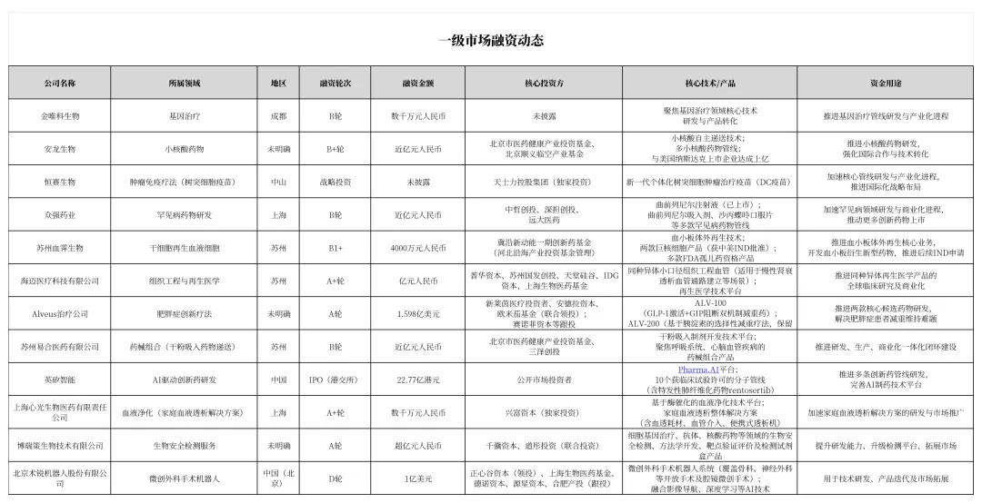 2025 年 12 月 27 日至 2026 年 1 月 9 日,中国生物医药投融资市场持续秉持 “技术驱动、细分聚焦” 的核心趋势,核医疗、肿瘤介入等具备高壁垒的细分赛道持续成为资本聚焦热点,AI 制药、核酸药物、细胞与基因治疗等前沿领域投融资活力凸显。政策端利好持续释放,新版医保目录落地、创新医疗器械审批优化等政策进一步为行业发展保驾护航,叠加临床需求不断升级,资本加速向具备核心技术壁垒、临床价值明确及产业化路径清晰的企业集聚,推动行业投资逻辑向 “重价值兑现” 转型。这一态势不仅助力完善产业协同生态,更持续加速医疗装备国产化进程与创新技术的临床落地步伐。