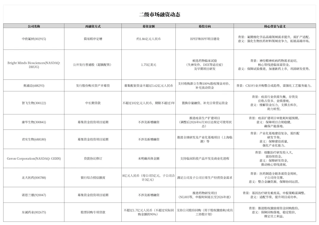 2. 国内药企本土BD合作持续升温:2025年12月27日以来,国内药企间围绕成熟产品商业化及后期管线开发的授权合作频繁落地。如恒瑞医药将SHR6508项目许可给翰森制药,翰森支付3000万元首付款及最高1.9亿元里程碑付款;绿叶制药授予恩华药业三款已上市抗精神病药长效针剂的中国大陆独家商业化权利,恩华药业支付2000万美元一次性授权费,此类合作聚焦本土市场资源整合,加速成熟产品放量与后期管线商业化进程。