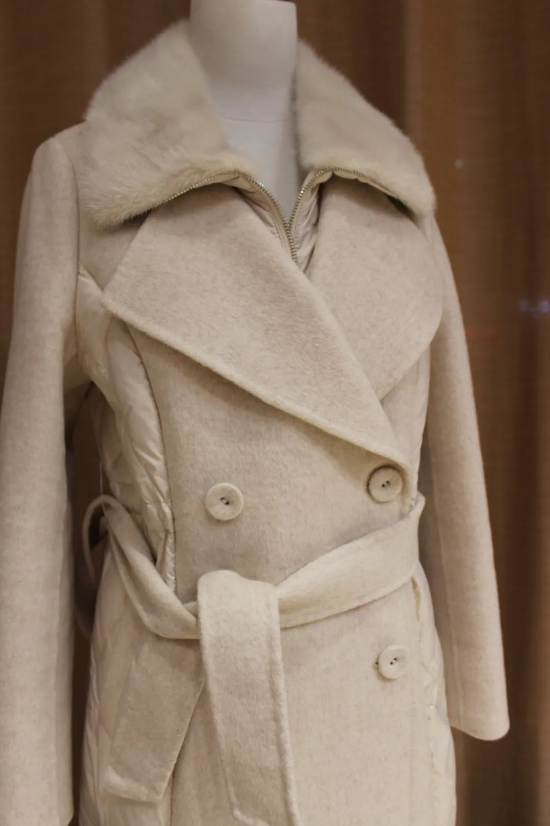 双面羊绒大衣是将经过筛选的高品质羊绒通过切割技术,把两层薄薄的羊绒缝合而成。这里的缝合不是机器而是一针一线手工完成的,看不到粗糙的缝合接口,这让整个双面羊绒大衣做工更加精细,每件都可以说是独一无二的。