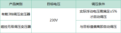 传统调压变压器进行调压时需严格按照档位系数调整,以目标电压为230V举例: