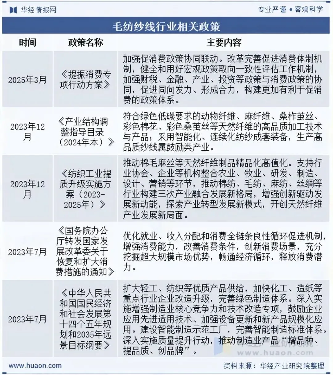 相关报告:华经产业研究院发布的《2026-2032年中国毛纺纱线行业市场全景分析及投资价值预测报告》