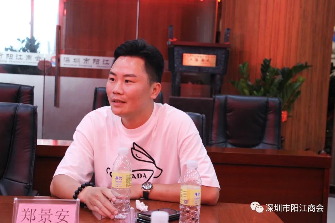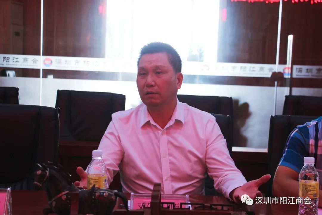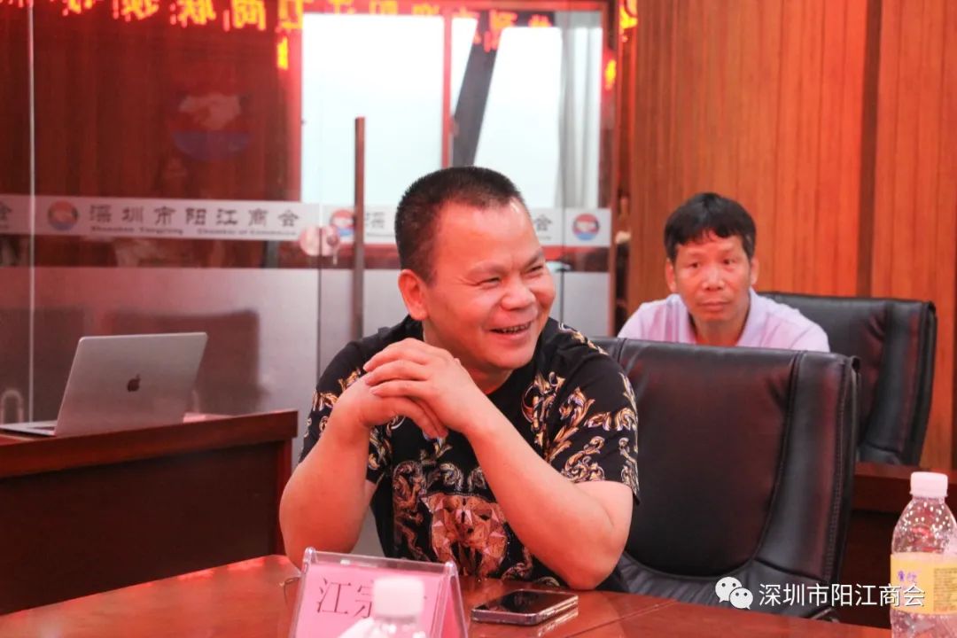 阳江市工商联党组成员林荣新,工商联秘书长、会员部部长谭晓军,经济联络部部长庞海旋等,深圳市阳江商会常务副会长兼常务副秘书长梁永锋、常务副会长兼副秘书长江宗才、常务副会长冯佐锦、黎计养,党支部书记陈廷妹、副会长刘海交、林元论、郑景安、张广良,理事邓茜等参加了座谈。