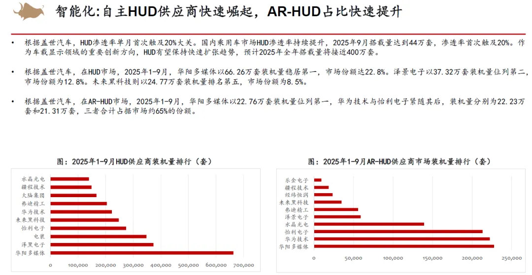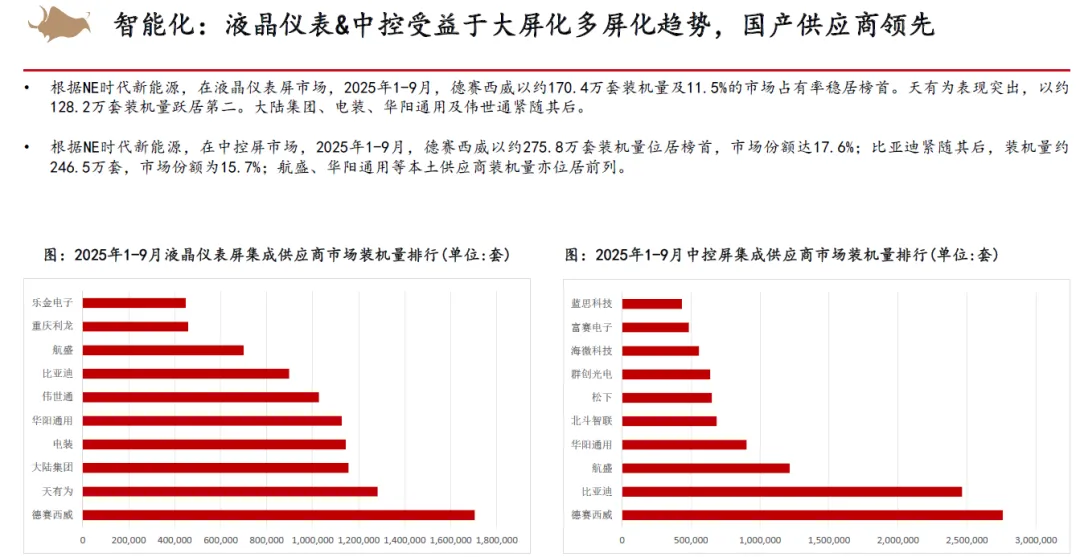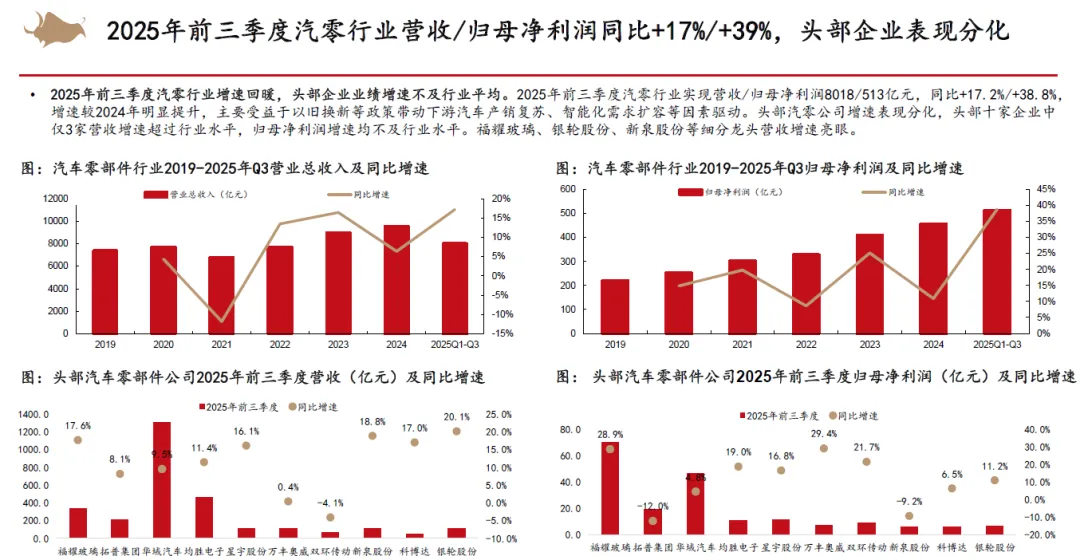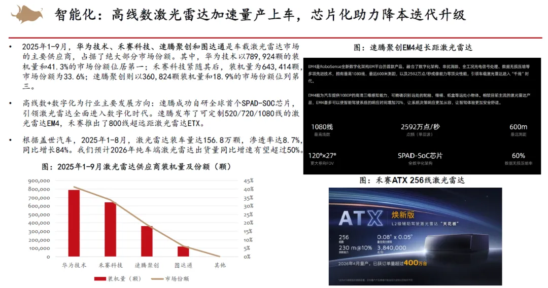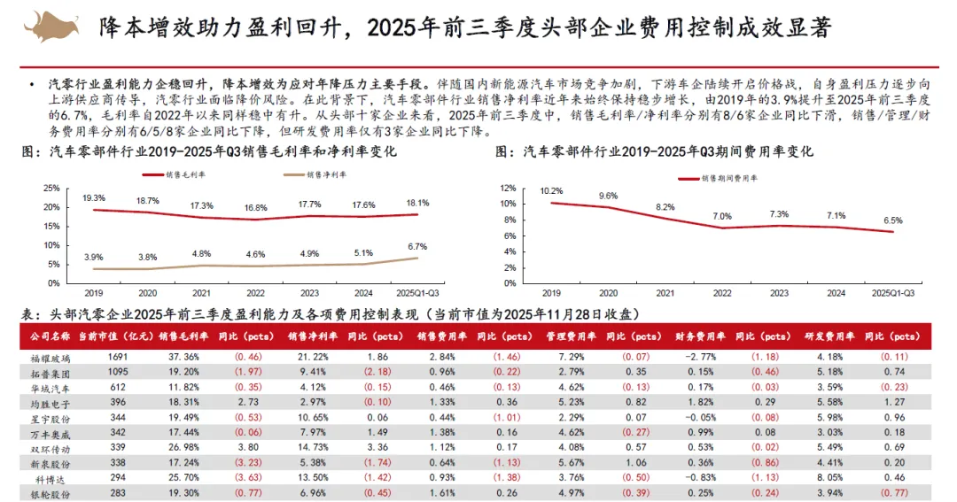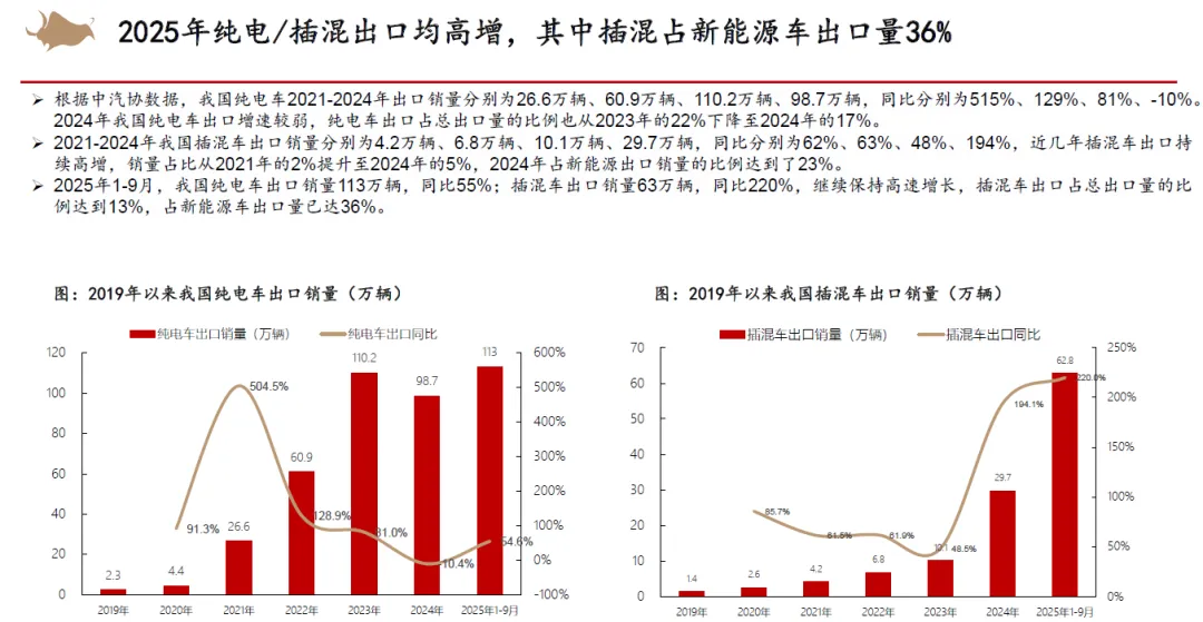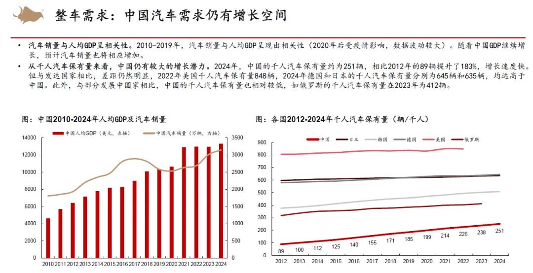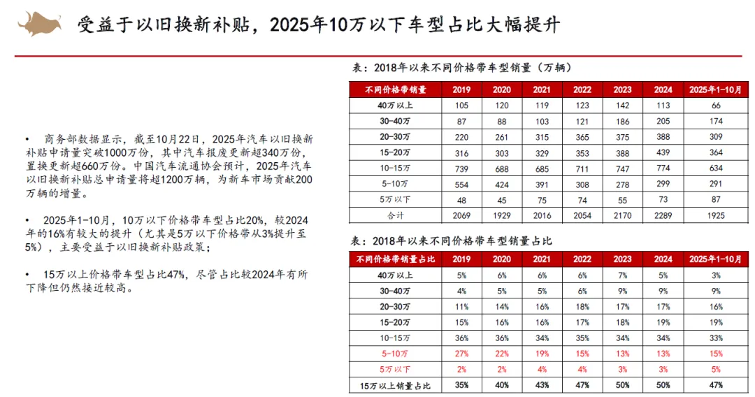 从整车竞争来看,认为2026年以旧换新补贴不排除金额下降,同时叠加新能源车购置税补贴从10%降低至5%,市场竞争将会更加激烈。但新能源优质供给继续增加,我们依然看好新能源车渗透率继续提升。2025年15万以下价格带销量快速增长,在当前时点,我们认为其增长趋势在2026年补贴减少的状态下或有一定的不确定性,而中高价格带则在2026年有望随着宏观经济和消费复苏稳健增长。同时,我们认为2025年整车出口好于预期,新能源车出口高增,海外丰厚的利润也为国内车企的盈利提升提供动力。展望2026,欧洲、俄罗斯、巴西、中东、北非等地区依然具有增长潜力,我们认为国内车企的海外销量增长还能够维持。