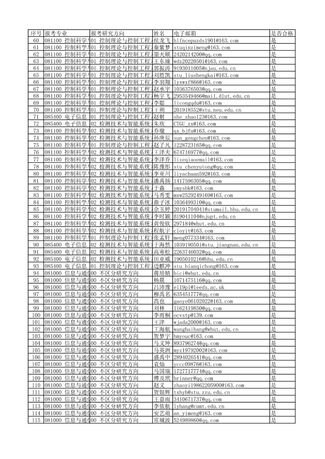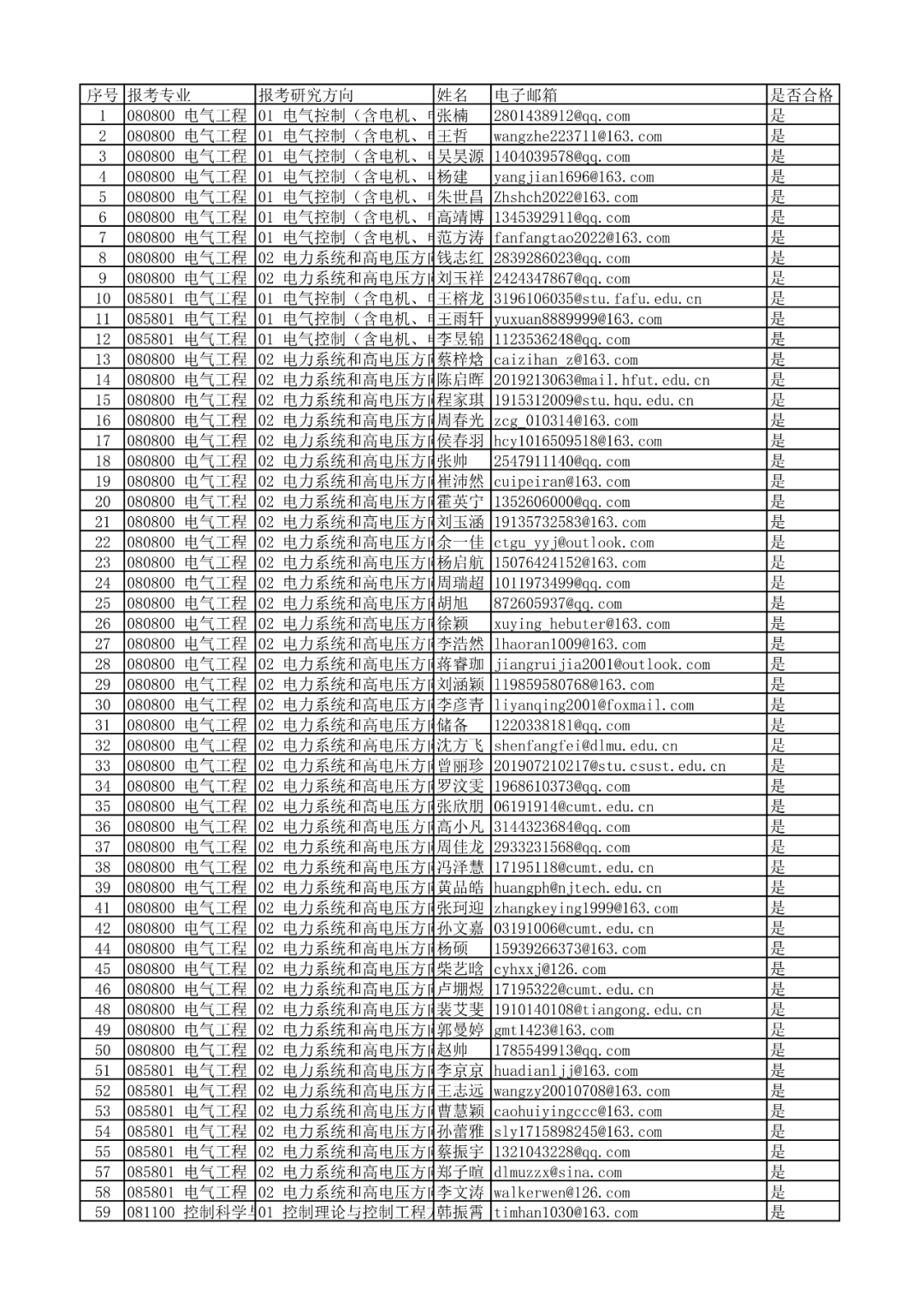 天津大学电气自动化与信息工程学院2023级研究生推免第一批合格名单