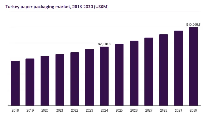 其中,土耳其的瓦楞纸板包装市场预计将以9.86% 的显著增长率持续扩张至2027年。