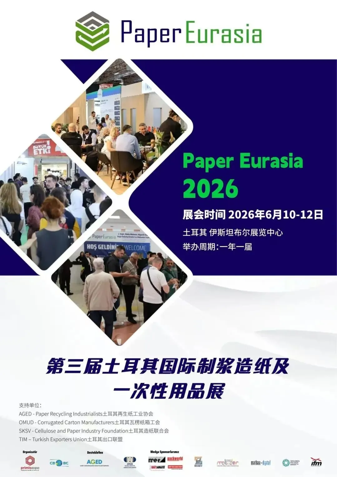 为助力国内企业开拓土耳其及周边市场,集中展示“中国制造”的雄厚实力与品牌形象,广东省造纸行业协会与山东省轻工机械协会经研究决定,共同组织“中国造纸国家展团”,参加定于2026年6月10日至12日在土耳其伊斯坦布尔举办的“土耳其国际制浆造纸及一次性用品展”(Paper Eurasia)。