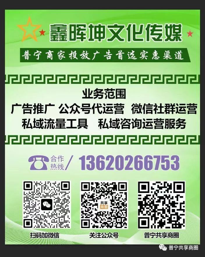 普宁共享商圈公众号(本地商业广告媒体)广告位和商圈店铺开通收费标准