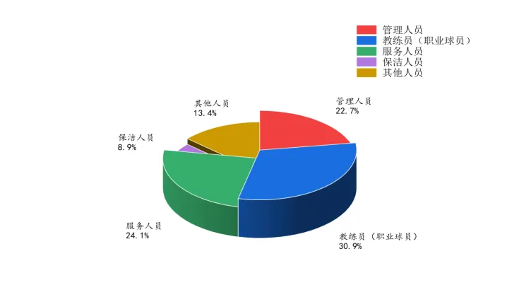 相较于球场以球童为主的服务导向,球馆更侧重于专业化教学,对具有教学资质的高水平教练需求显著高于传统场地型业态。服务人员和管理岗位合计超过46%,显示室内球馆作为运营效率较高、客户接触频次密集的空间,具有较强的就业带动能力与岗位多样性。从产业视角看,随着城市化进程与居民体育消费方式的转变,高尔夫球馆在一线及新一线城市中呈快速发展态势,其就业吸纳功能有望进一步增强,成为推动体育服务进社区的有效载体。