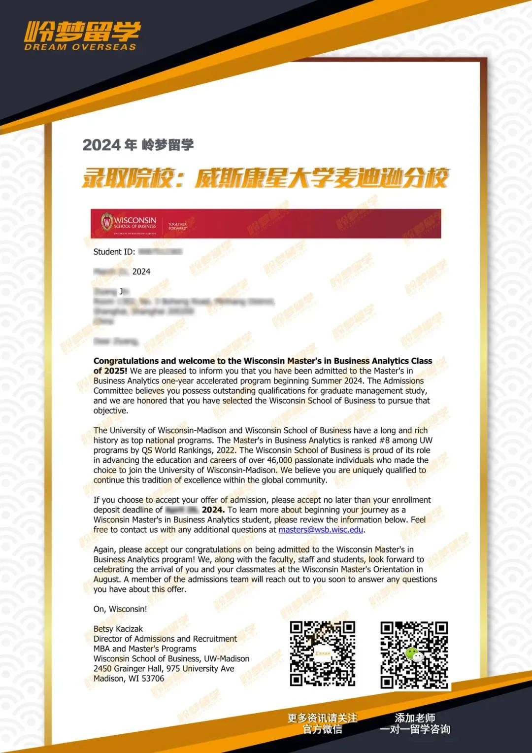 恭喜岭梦留学:J学员,收到offer啦!