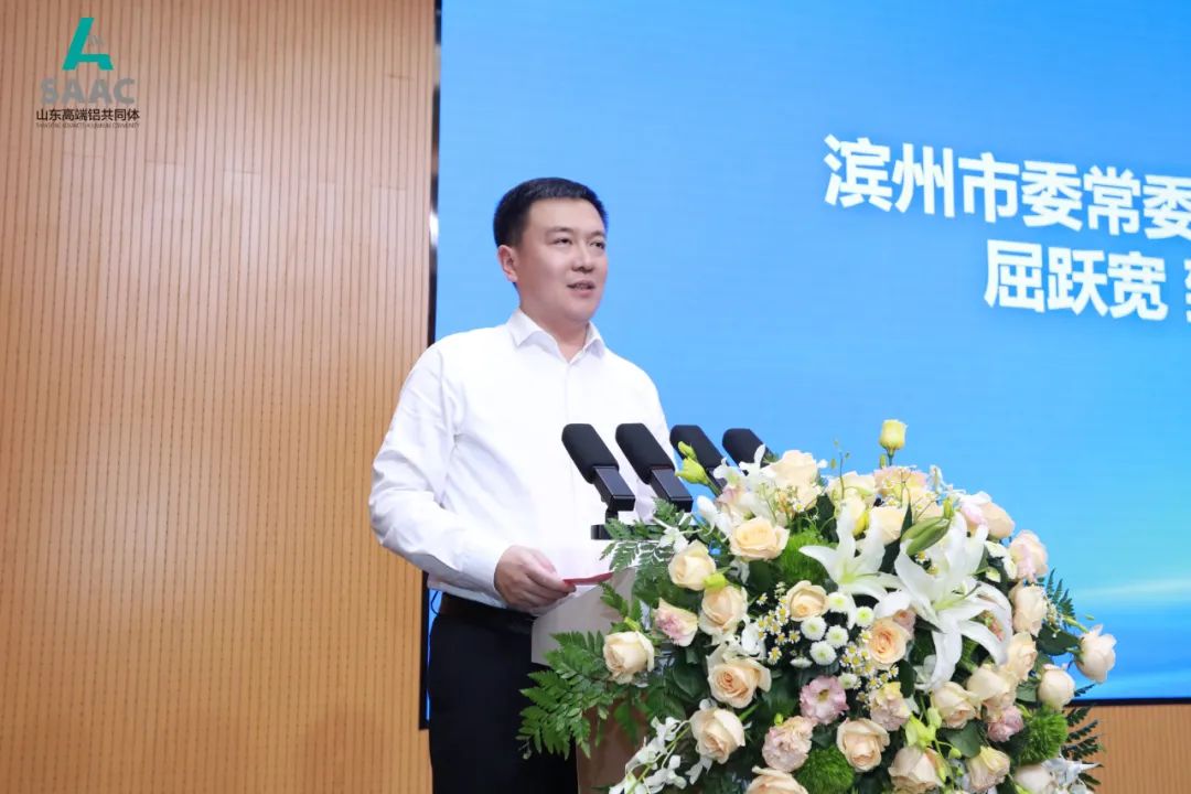 屈跃宽在致辞时表示,滨州市是科技部唯一认定的国家高端铝材高新技术产业化基地,是国家战略支持和山东重点布局的世界高端铝业基地的主阵地、核心区和先行区。2022年,滨州市铝产业集群产值达4778亿元,被誉为“中国铝都”“世界铝谷”。滨州市委、市政府高度重视高端铝共同体建设,建立“吹哨集结”服务机制,对需要支持的事项第一时间响应、第一时间联动、第一时间解决、第一时间反馈,有效保障了高端铝共同体健康快速发展。