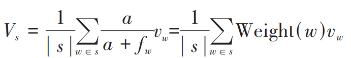 其中,Vs为文档向量,Vw为词向量,a为用于平滑的超参数,通常取10−4~10−3,fw为该词词频,通过加权获得文档向量。根据词频对词向量进行平滑反频率加权,能够更好地捕捉到句子/文档的中心话题。在计算不同词的权重时,采用预设的公开语料下的词频进行权重计算,同时也可以统计当前应用场景下的词频,用该场景下的词频进行权重计算从而实现finetune,从而提高关键词抽取在特定应用场景下的准确度。