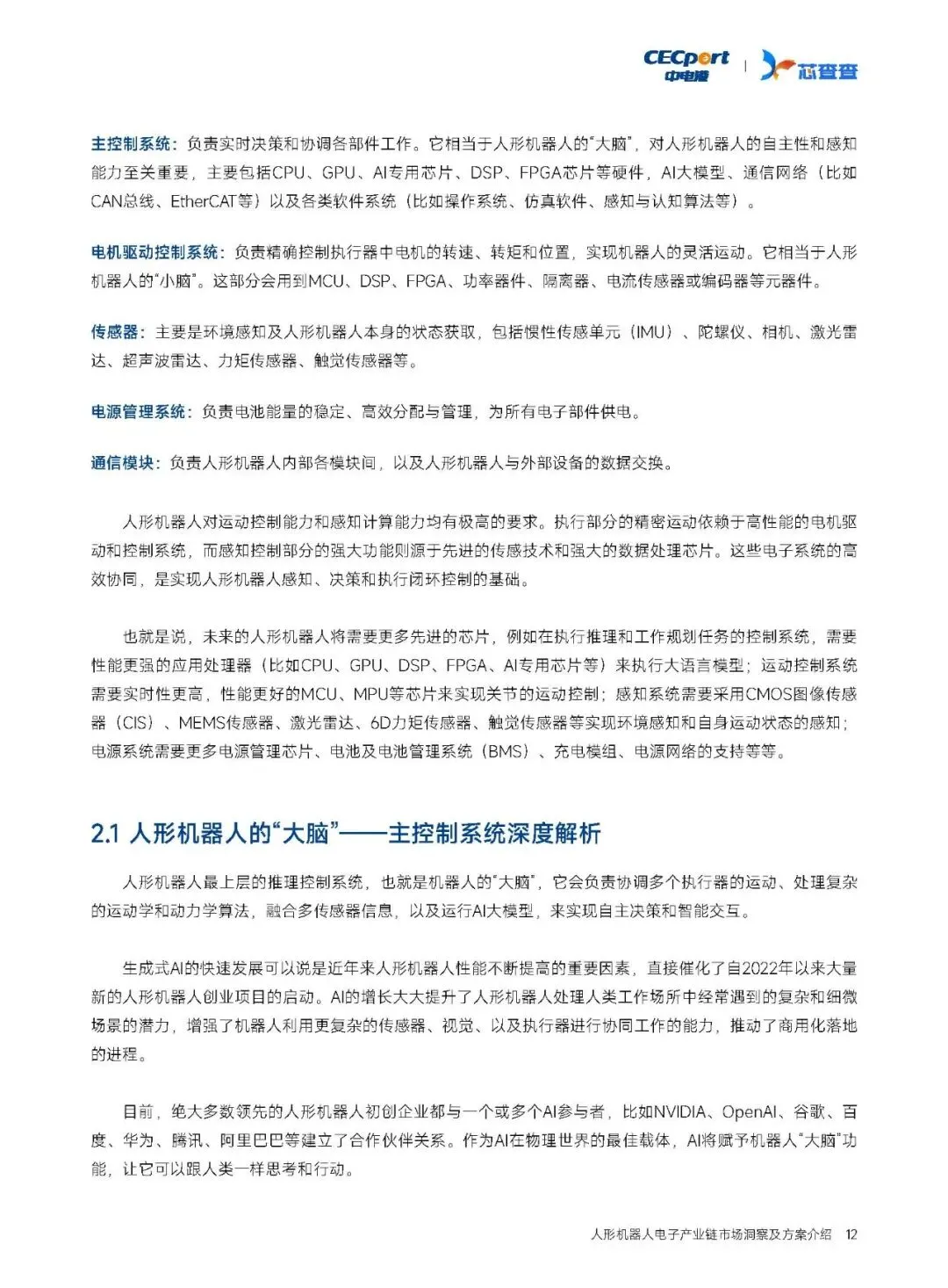 芯查查:2025人形机器人产业链市场洞察及方案介绍报告