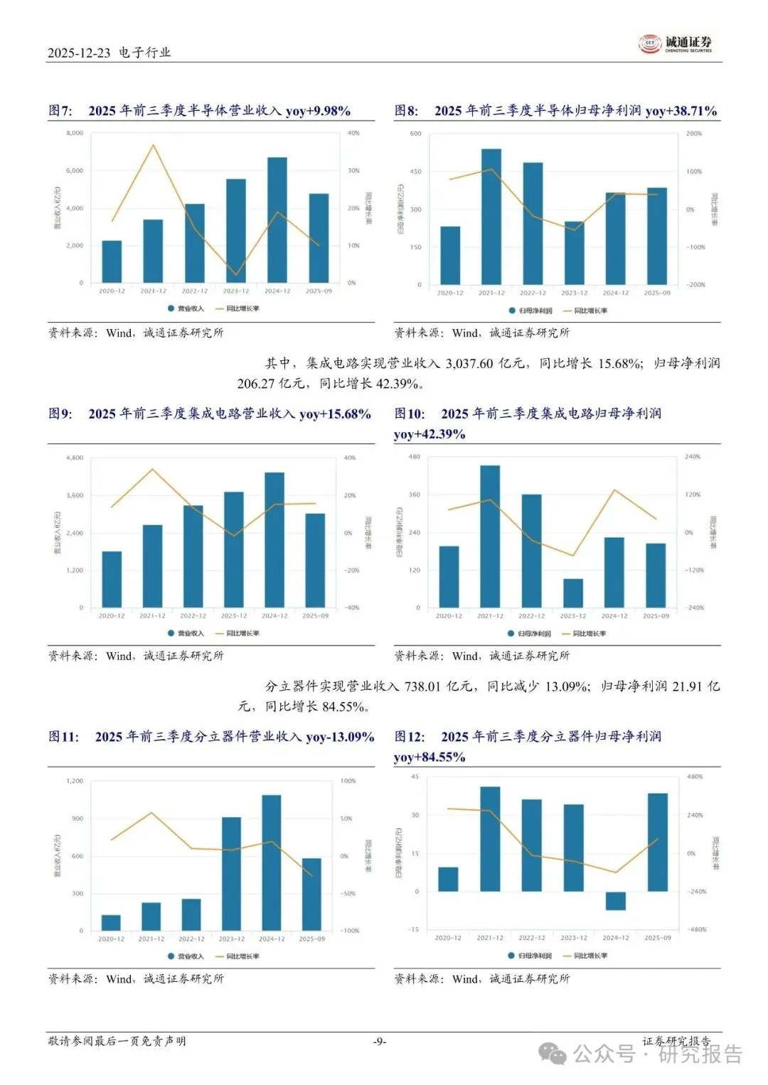 全球 AI 算力投资与中国大陆晶圆厂扩产共振,前三季度营收、归母净利润均实现 30%以上的高增长。集成电路:指数上涨 37.59%。国产替代加速,利润增速高于营收增速,盈利能力改善。
