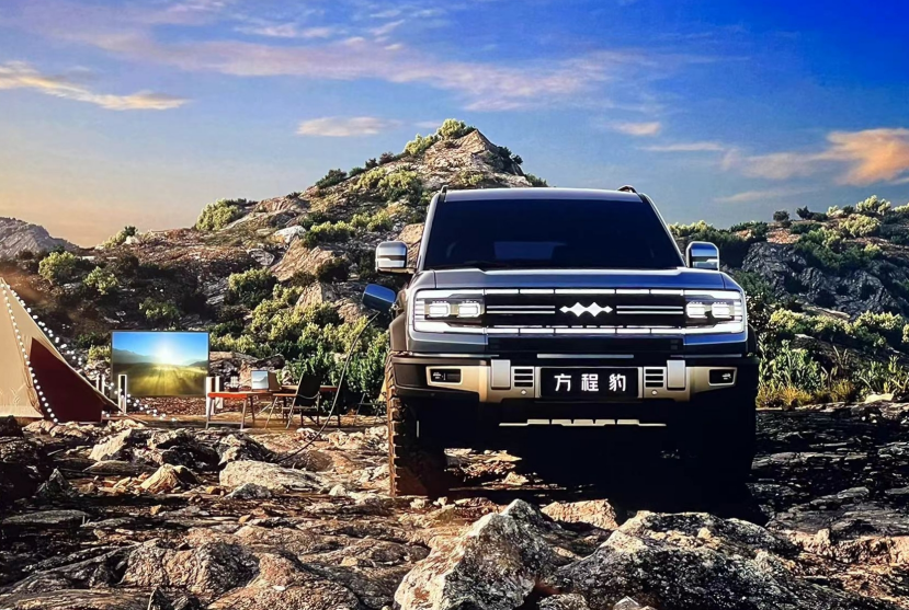 从此次亮相的“583”硬派家族不难看出,方程豹所触及的首个专业领域便是硬派越野SUV领域。外观方面,豹5采用复古硬派越野风,前脸配备了环绕式的LED日行灯和电流矩阵大灯,十分具有辨识度。车尾采用电极环扣式造型设计的尾灯组,与车头相呼应。而外挂式备胎以及横开式尾门,则是硬派SUV的常规操作。此外,新车在门把手、行李架、下包围和轮眉等多处采用了黑色设计,进一步强调其硬派身份。内饰方面,中控台采用了对称设计,大面积覆盖皮质材质。中间配备悬浮式液晶屏,仪表盘采用全液晶屏设计,物理进行了按键大量保留,符合其越野的定位。动力方面,豹5搭载全新DMO混动系统,通过将越野专属双层刀片电池和高强度钢占比96%的大车架结合,演化出的CTC电池底盘一体化技术,实现大车架扭转刚度较传统豪华越野车提升38%,正碰侵入量降低30%,侧柱碰侵入量降低25%,整车质心也更趋向于黄金中点,并实现50:50的黄金轴荷比,且底盘空间利用率提升49.7%。同时,1.5T高效混动发动机搭配前后双电机组,前电机最大功率200kW,后电机最大功率285kW,系统的综合功率超过500kW,经过放大后的综合扭矩超过32000N·m,零百加速达到4s级。