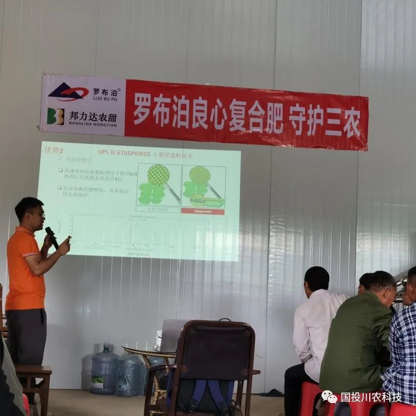 邦力达农甜产品经理韦家亮深入一线,为用户阐述罗钾企业文化、发展历程以及罗布泊特肥产品特点,助力罗布泊渠道品牌搭建。