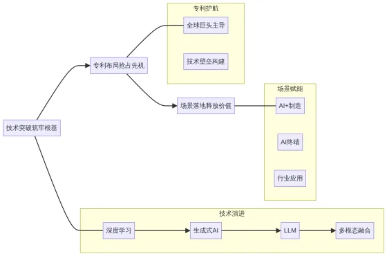人工智能产业的扩张并非单一维度的线性发展,而是由技术、知识产权和商业应用共同驱动的复杂系统。其核心叙事逻辑可以概括为以下三个相互支撑的阶段: