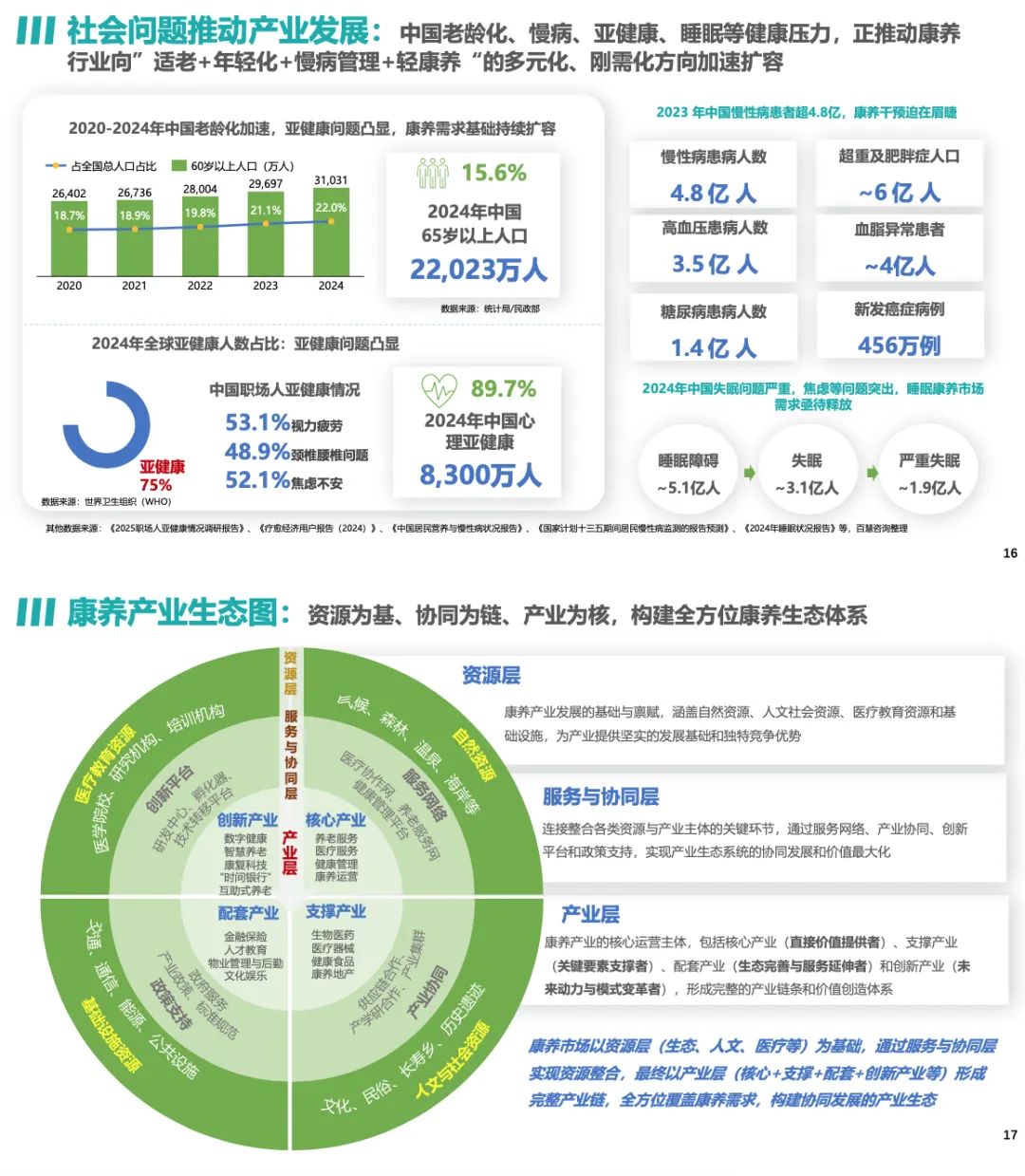 #康养 是一种贯穿全生命周期的主动健康实践。其产业并非相关领域的简单叠加,而是一个
