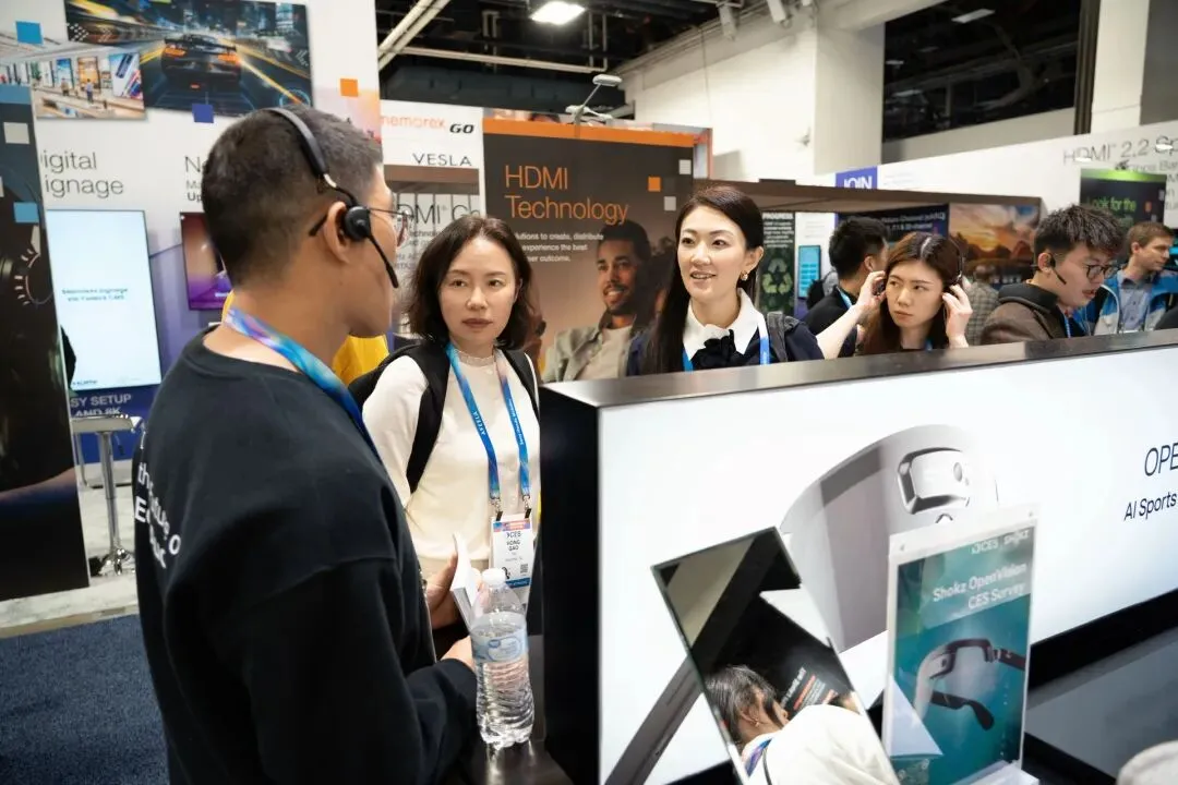 王明明在 Shokz 展区与参展团队交流时表示,可穿戴设备正在从单一功能产品,演变为连接用户与智能系统的重要入口,其背后对供应链柔性和产品可靠性的要求也随之提升。