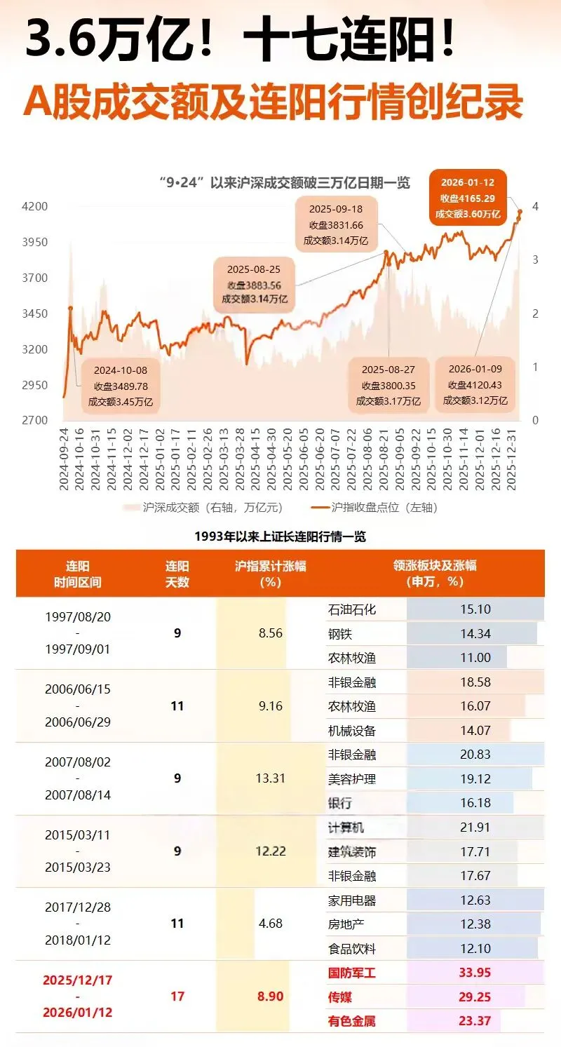 最震撼的是成交量,3.64万亿元的天量成交,创下了A股历史新纪录,说明增量资金正跑步进场。盘面上超过4100只股票上涨,赚钱效应直接拉满。但月满则缺,物极必反要牢记心头,一旦手中股票出现放量大跌要及时锁定利润。