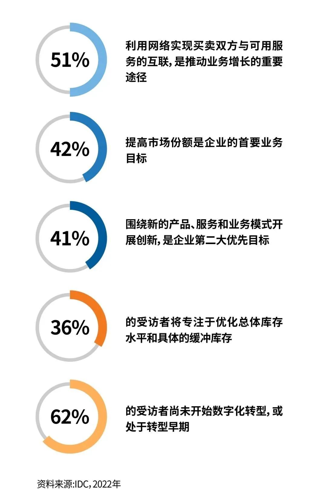 因此,62%的批发分销类成长型企业必须加快数字化转型步伐,它们需要连接更先进、更广泛的交易网络和供应链网络,把握住所有营收机会。同时,批发分销类成长型企业需要投资部署必要的工具来关注库存健康和周转效率,提高供应链韧性。
