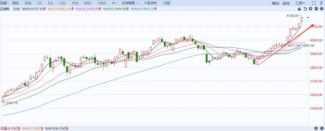 从日线上看,今天多数标的拉了一根大阳线,尤其是中证1000,和500。再再再再再再再再再再再再再再再再从日线上看,最近这几个月的行情其实表现非常好,均线发散均线,多头排列连续阳线和最后连续的大阳线。