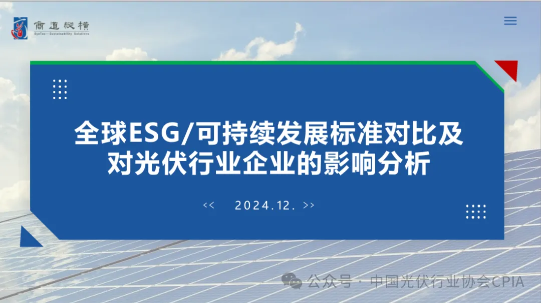全球ESG/可持续发展标准对比及对光伏行业企业的影响分析