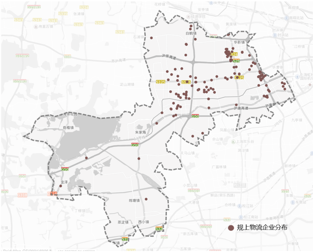 2021年1-11月华新镇规模以上交通运输业月收入1140亿元,占青浦全区规上交通运输业营业收入的一半以上,规上物流企业在华新、徐泾集聚效应显著。