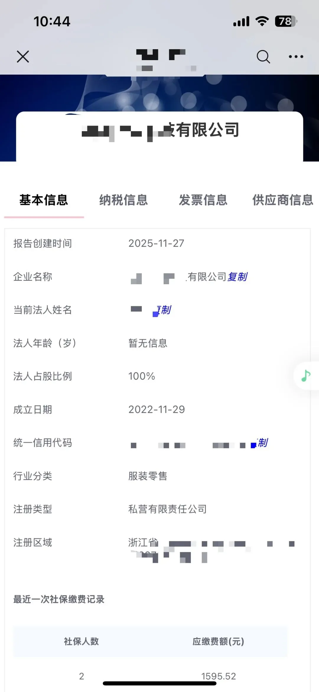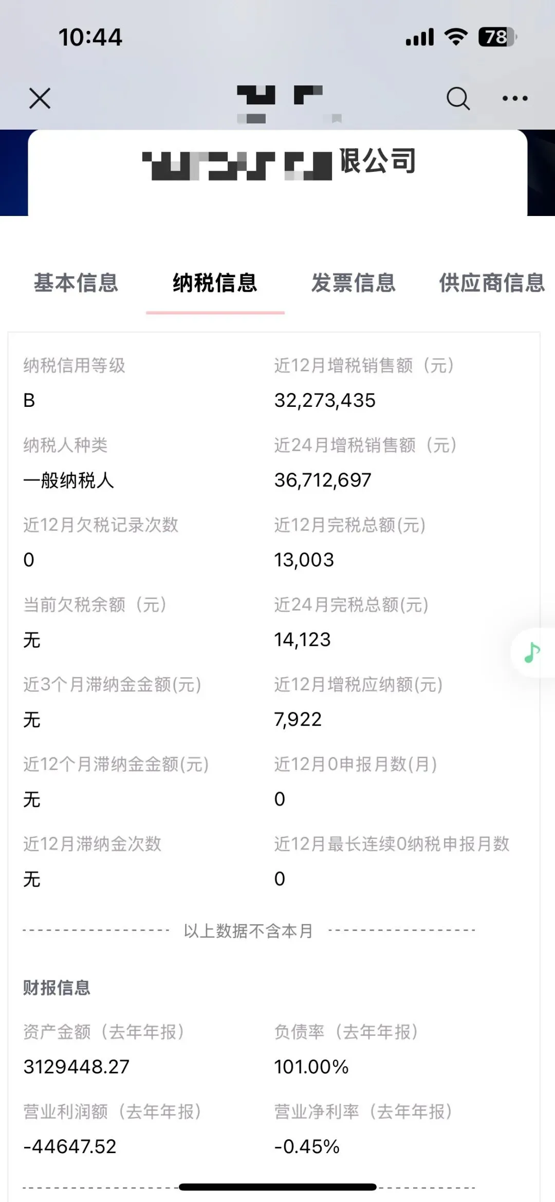 • 税负异常:0.04% 疑似虚开或税务风险。