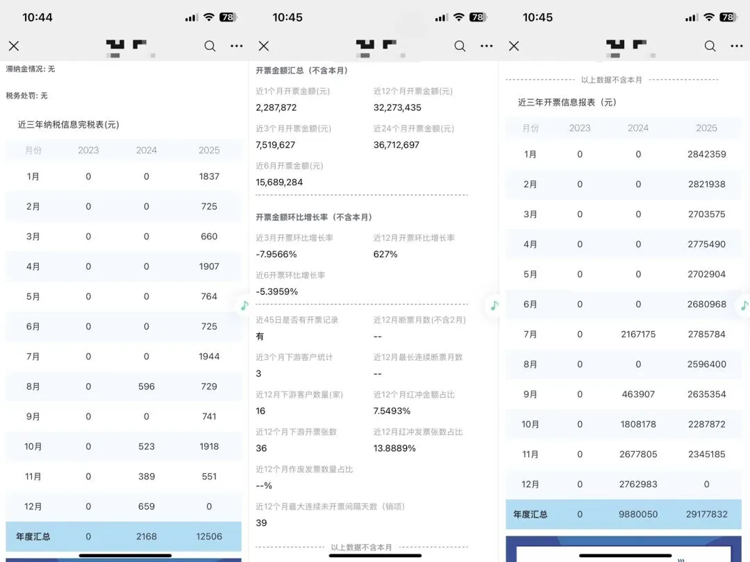 分析:与纳税销售额一致,数据交叉验证可信 ✅。 - 近12月环比增长率:627% ❗