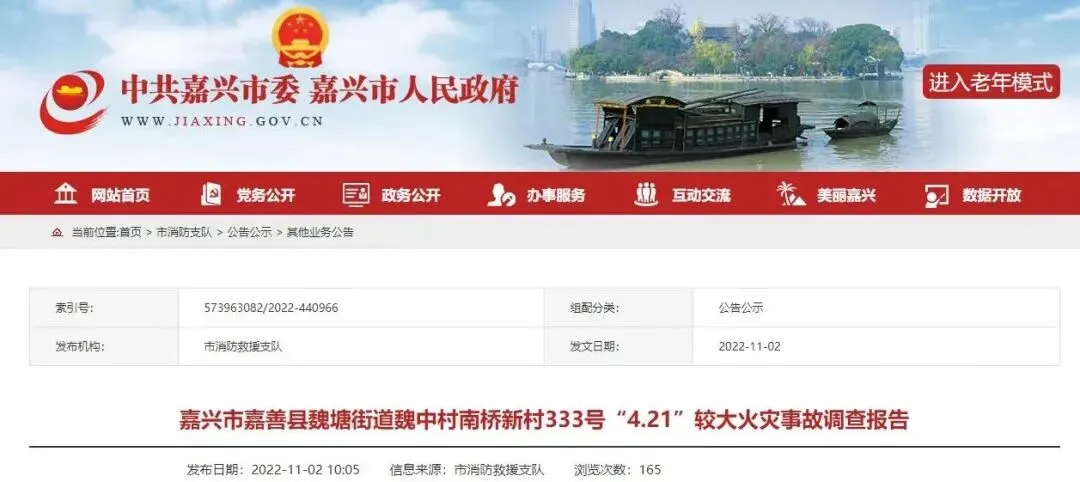 近日,嘉兴市政府公布了该起事故的调查报告。