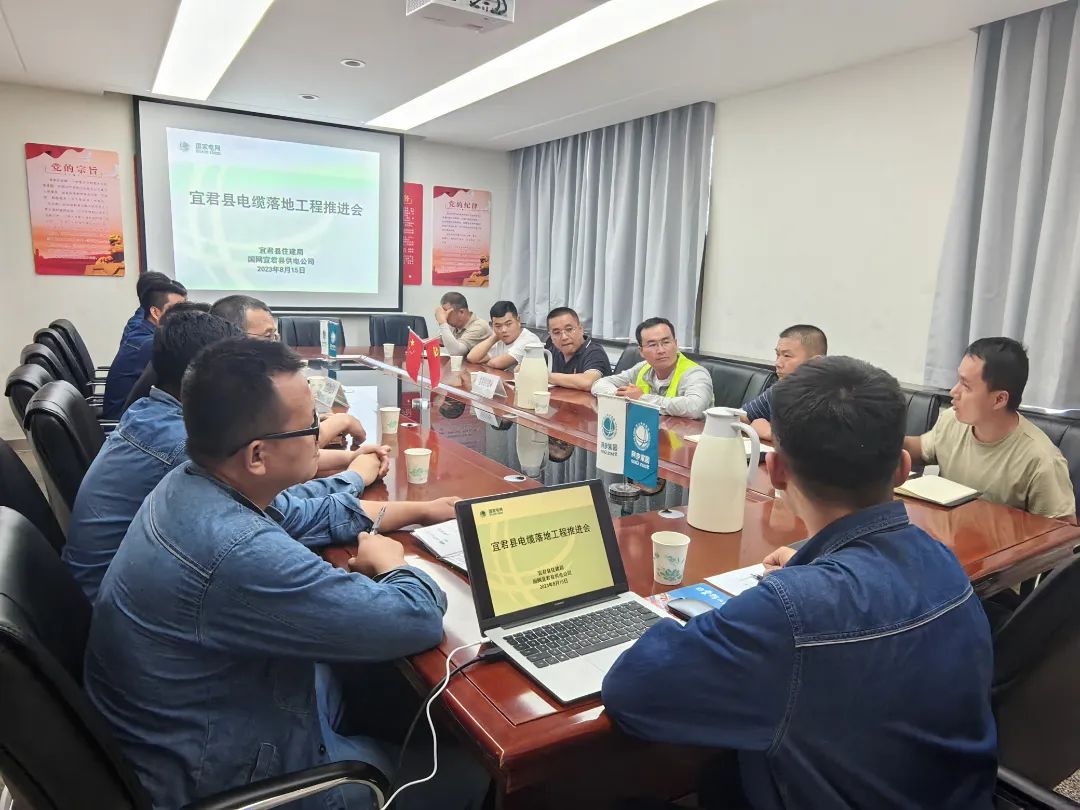 为进一步加快宜君县架空线路落地电网攻坚项目建设进度,研究解决实施过程中存在的问题,按期完成建设任务,8月15日,宜君公司会同县住建局及县城电缆综合管沟施工各标段,共同召开县城电缆落地项目推进会,公司总经理、分管副经理、相关部门、施工队,宜君县住建局、各标段参加会议。