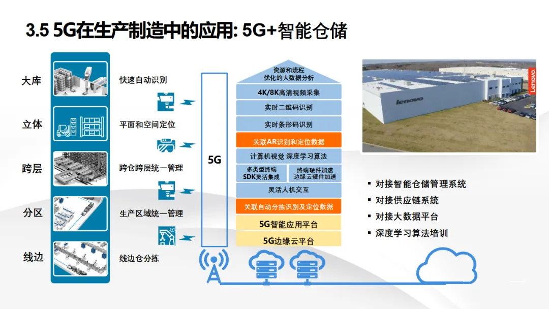 网络架构:生产网与办公网物理隔离,5G专网用于移动场景(AGV、巡检),Wi-Fi 6覆盖固定区域。
