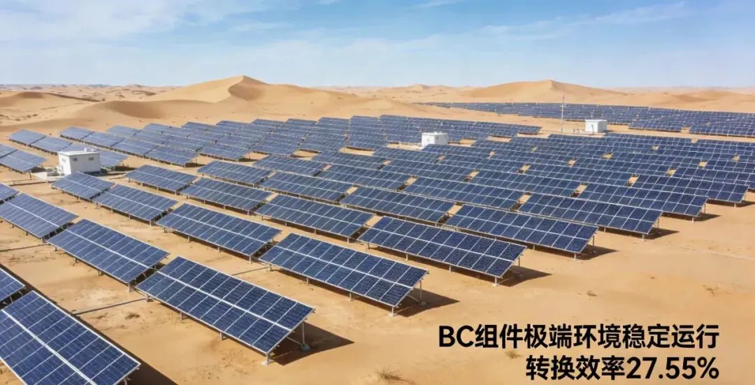场景拓展成为BC技术的核心竞争力:从户用分布式到工商业电站,从山地弱光环境到水面高湿度场景,BC技术均实现针对性适配。尤其在塔克拉玛干沙漠“沙戈荒”实证基地项目中,爱旭ABC组件凭借超强的耐磨性、抗腐蚀性和温差适应性,成功中标2.1MWp标段,验证了其在风沙频繁、昼夜温差极大的极端环境下的稳定运行能力 。业内预测,未来几年BC技术在集中式场景的市场份额将以每年10%的速度持续增长。
