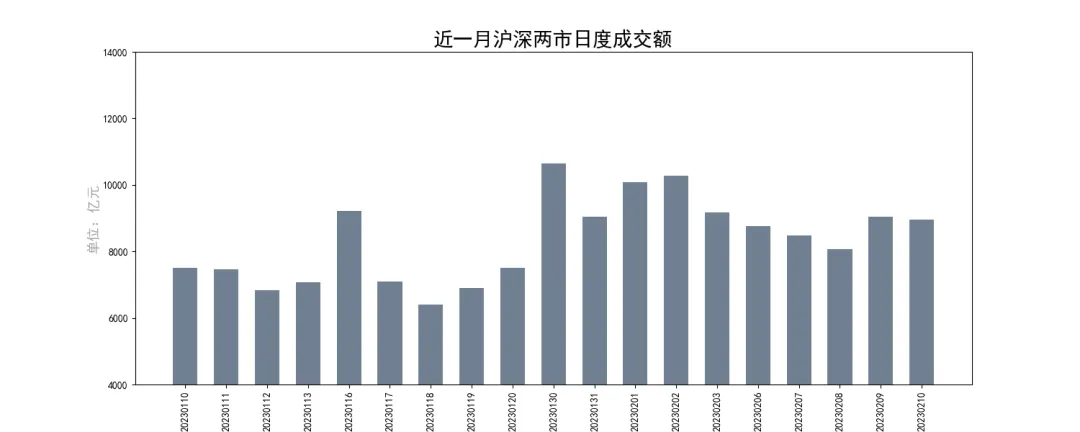 上周沪深两市日均成交金额不足9千亿元,相比前一周日均成交额有所降低,周环比降11.97%,市场成交活跃度进一步走低。近一月A股市场日均成交额为8342.04亿元,市场情绪低迷,交投相对冷清。