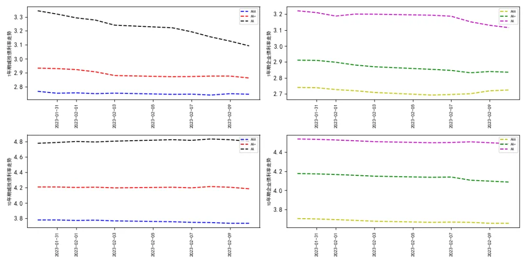 上周信用债一级发行852只,发行总额8440.37亿元,发行主体以AAA为主。二级市场总成交额24.63万亿元,周环比缩减0.03%;其中现券成交占比23.38%,回购比重为76.62%,低于近一年回购比重均值水平。上周信用债收益率多数下行,其中1年期AAA城投债变动-0.79个BP,1年期AA城投债变动-14.79个BP,1年期AAA企业债变动1.55个BP,1年期AA企业债变动-8.45个BP。城投债短端信用利差收窄,长端信用利差走阔,企业债短端和长端信用利差均有收窄。