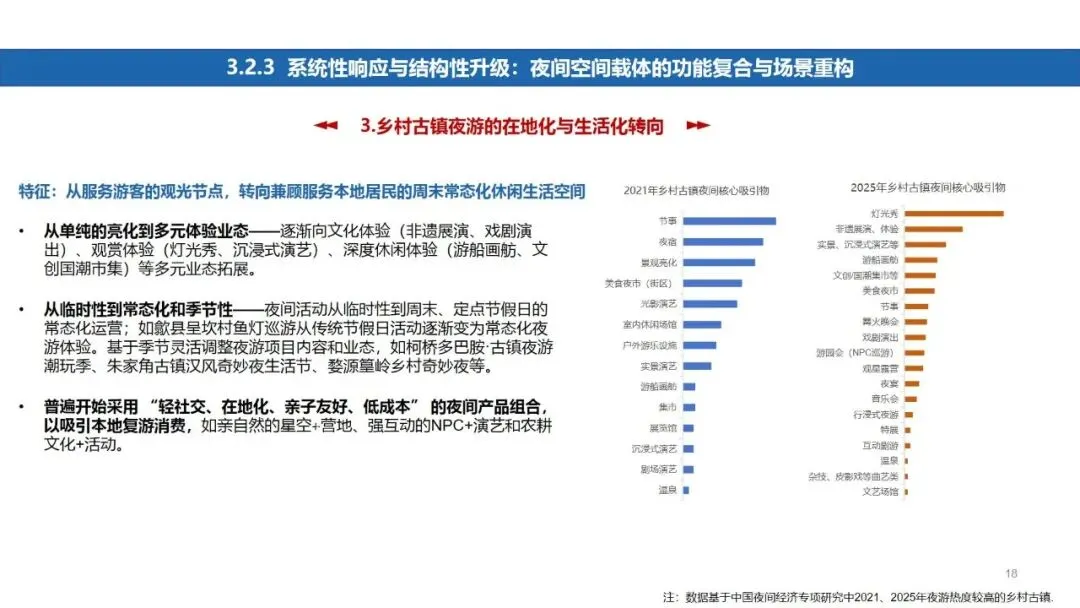 供给侧随之发生深刻变革:头部#景区 与文博场馆加速构建覆盖“食住行游购娱”的全链条夜间生态;商圈街区向“公园化、漫步式”的无边界社交空间转型;乡村古镇则依托在地文化与风物特产,成为本地居民寻求精神缓冲与文化休憩的新驿站。