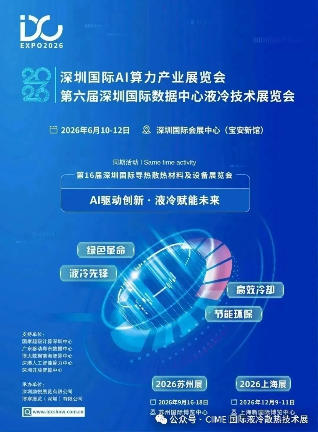 IDC 2026 第六届深圳国际数据中心液冷技术展览会 致力于促进热管理液冷技术的快速发展,打造值得信赖的商贸平台!