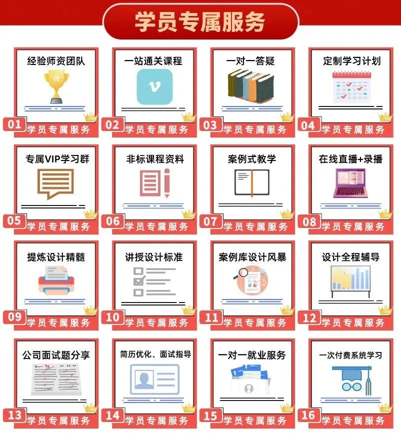 课程服务:一对一答疑+简历优化修改+就业指导面试指导+公司推荐等,想了解提升自己的同学可以咨询客服老师,多了解总是没错的~