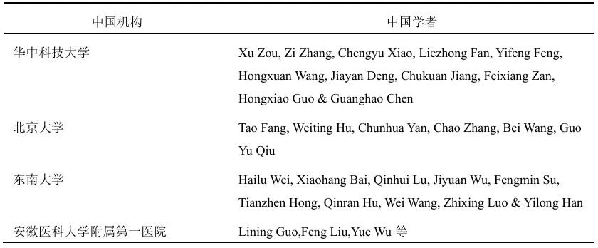表1:中国机构的学者发文统计