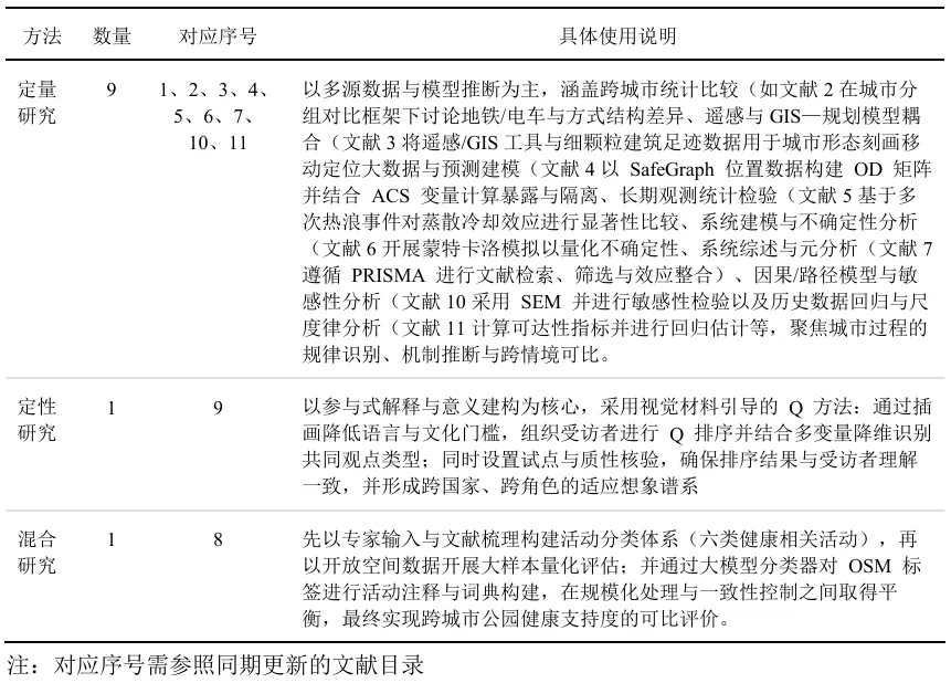 表2:本期文献(共11篇)的研究方法统计
