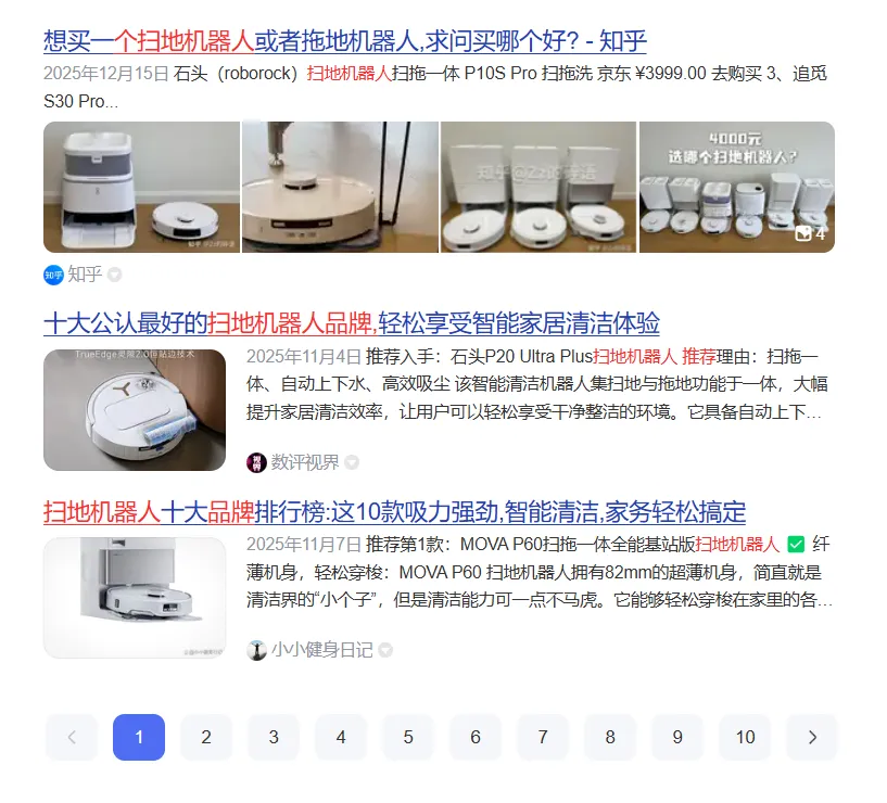 仍旧用前文提到的案例来说明。对于扫地机器人产品的相关表述,“在解决毛发缠绕这一问题上,X 产品采用了 X 结构设计,适合多宠家庭”,这就比较“AI 友好”。功能对应能解决的问题,场景突出解决方案,特征显化方便 AI 对横向对比。