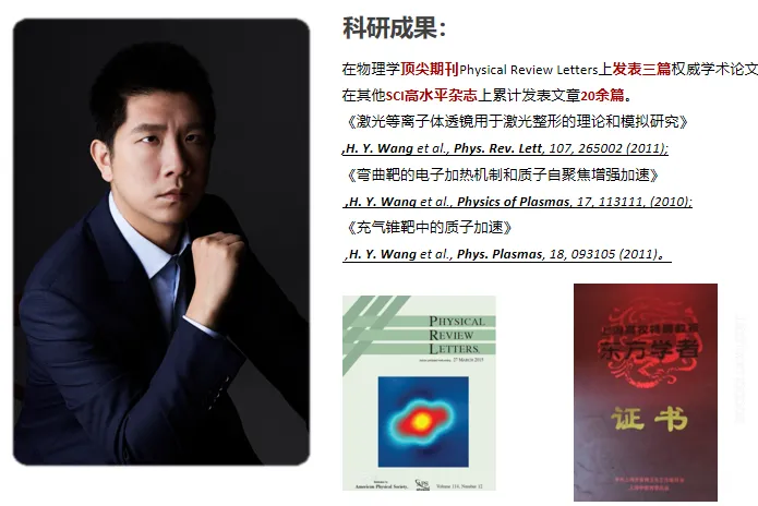 王博士在物理学顶尖期刊Physical Review Letters上发表三篇权威学术论文,在其他SCI高水平杂志上累计发表文章20余篇。