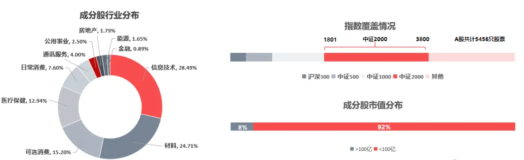 成分股数量多:包含2000只成分股,是目前成分股数量最多的宽基指数之一;