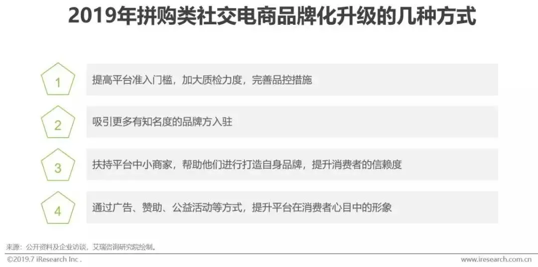 这些变化与平台早期爆发式增长的动力来源其实是相悖的,势必会影响平台已有长尾商户的价值和利益。如何平衡消费者、商家与平台自身的利益将成为拼购类企业长期发展的巨大挑战。此外,在平台品牌升级化的过程中,拼购类社交电商平台还将需要更多地面对来自巨头的正面竞争。