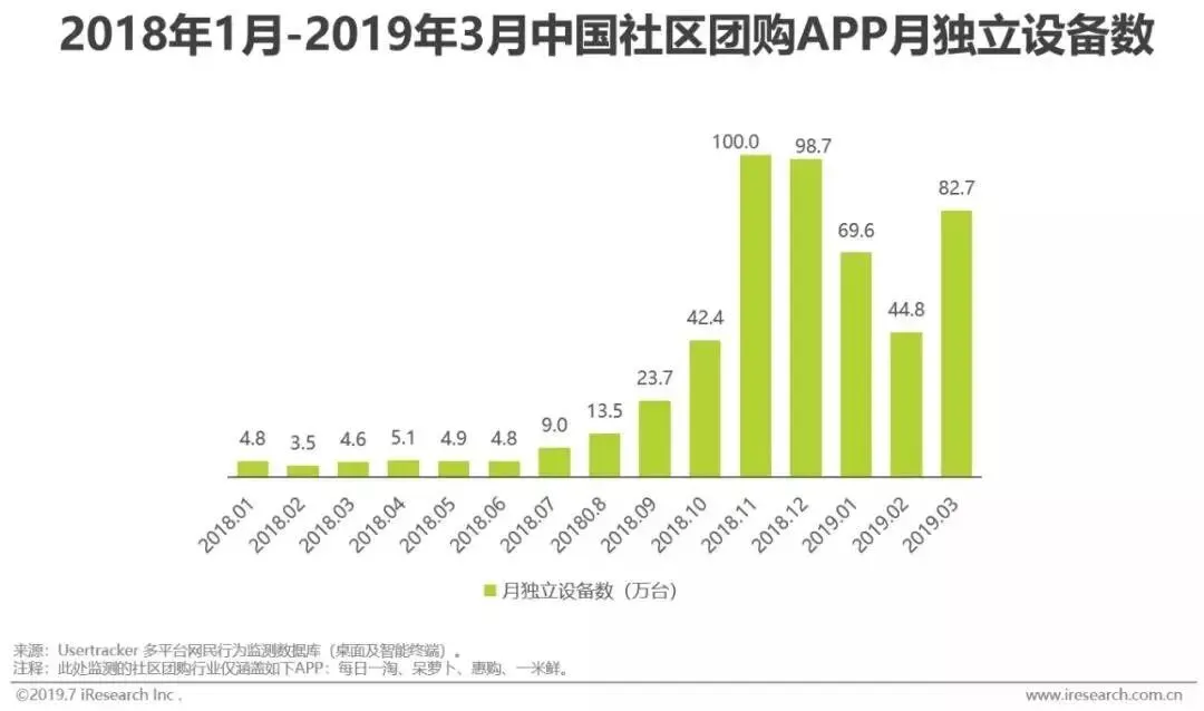 自 2016 年起步以来,中国社区团购行业在短短两年的时间飞速发展,尤其在 2018 年下半年开始爆发式增长,2018 年全年行业规模达 73.6 亿。一大批平台在资本寒冬中仍然不断拿到大额融资,几个头部平台的月交易额快速破亿,供应链上下游密切关注,越来越多企业开始加入到战局中,预计 2019 年中国社区团购行业规模将上一个新台阶。