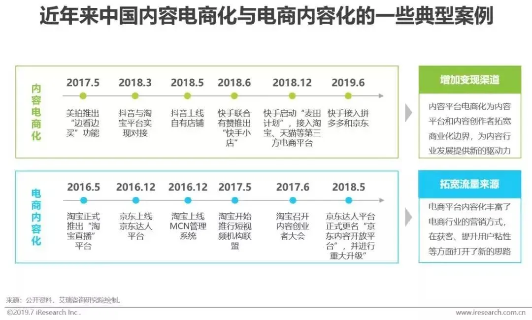 从供给端来看,内容类社交电商的出现实际上是内容方和电商方共同推动的一种互补选择。一方面,传统电商在经历多年发展后,增速渐缓,亟需找到新的流量来源,内容作为介质,在提升电商用户粘性和消费者体验上作用明显;另一方面,蓬勃发展的社交内容平台也经历从流量到利润的生死一跃,众多平台开始积极寻求通过电商交易的方式对其拥有的社交流量实现多元化的商业变现。